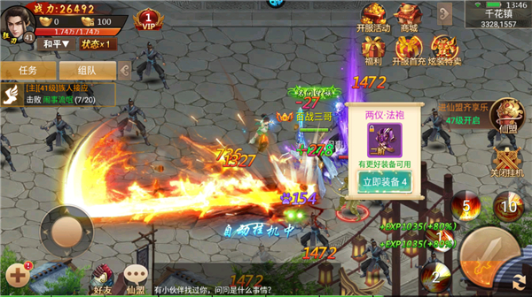 3、仙盟福利,每日刷新,点击即可获得奖励(2小时离线挂机时间);