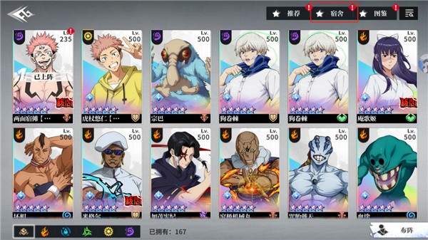 收录了超过50名角色,包括限定版的五条悟与夏油杰等,玩家可以通过活动或抽卡机制获得这些角色。