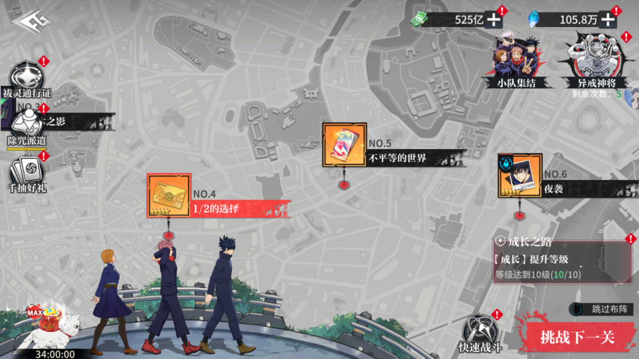 2、进入主线后,可进行关卡挑战;右下方还可以可看到【成长之路】任务提示,根据任务提示完成,即可获得丰厚奖励。