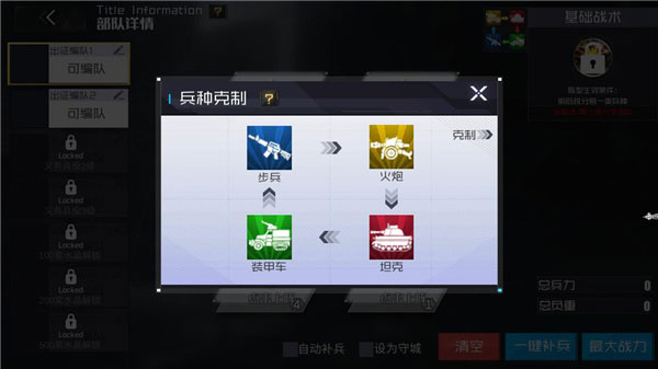 游戏中也是兵种的克制关系的,如果遇到远征的图打不过,可以研究一下对面的兵种位置摆放,然后针对性的对己方部队进行排兵布阵,说不定之前卡住的关卡就能顺利通过了。