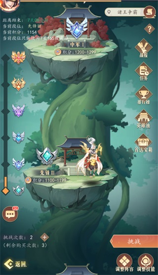 随着段位的提升,可以上阵3个队伍,即18个英雄,可自由搭配,组合对战;