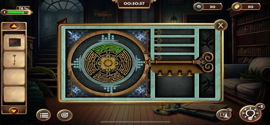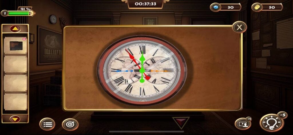 部分复杂谜题需要分步骤解决,例如调整时钟指针需要依据钱包中找到的颜色数字线索,耐心和细心是通关的秘诀。