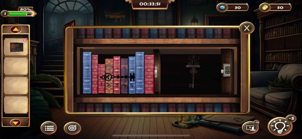 10、完成书架书籍排列谜题,解决四把钥匙拼图获得新钥匙