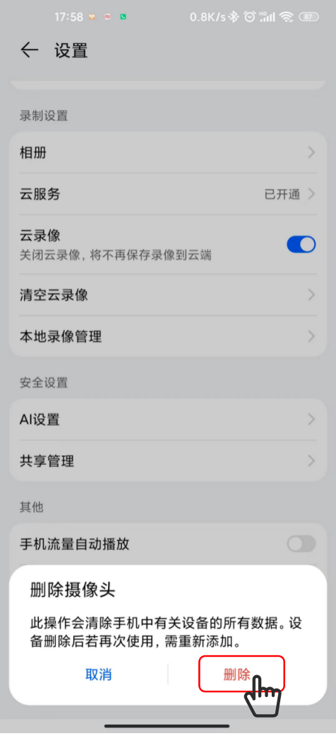 打开app,找到你要解绑的摄像机设备。在设备操作界面,通常可以通过点击右上角的图标或进入设备控制界面来访问设备的设置选项。在设置选项中,你需要找到并点击“删除摄像头”或类似的解绑选项。系统会提示你确认解绑操作,确认后,设备将与你的帐号解绑。