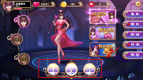 1、游戏有挑战、冒险、竞速三种模式。选择任意一种模式开始游戏!