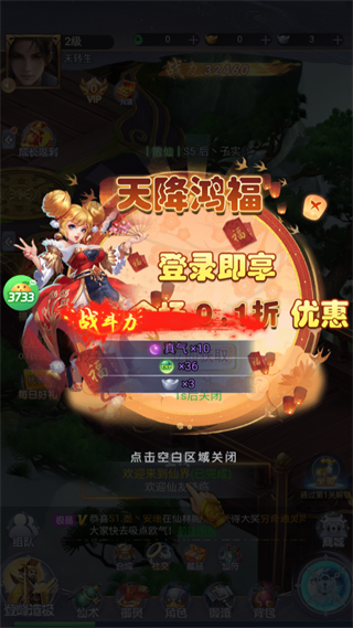 1.挂机机制解放双手,配合0.1折福利,平民玩家也能快速成长。
