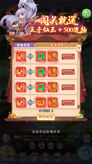 Roguelike探险:月度轮换的仙界探险地图,随机资源点与上古法阵挑战,奖励稀有道具。