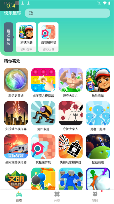 快乐星球游戏盒子整合全网优质游戏资源,构建一个庞大而全面的游戏生态系统,让使用者无需在多个渠道寻找游戏。着力优化游戏运行环境,减少卡顿和延迟,让使用者在任何时候都能享受到流畅稳定的游戏体验,告别不必要的烦恼。非常重视游戏内容的甄选,确保所提供的游戏都是经过安全检测的正版资源,让使用者可以安心玩耍,无需担心恶意软件的侵扰。