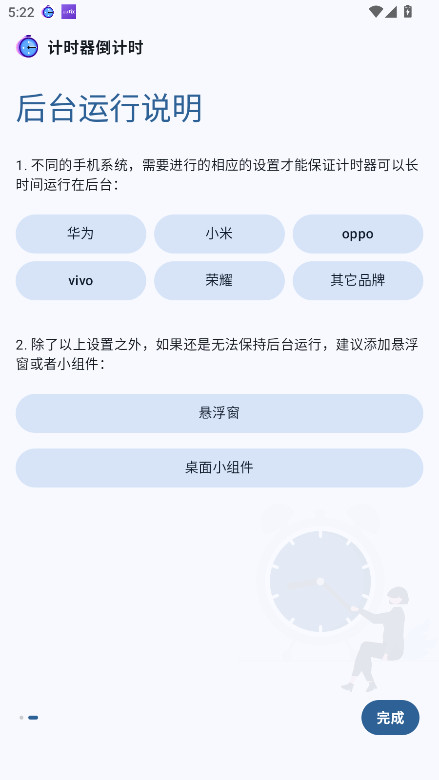 4. 为了避免错过重要时刻,这款应用具有提醒功能,在计时结束时设置闹钟、振动或通知栏消息等多种提醒方式。
