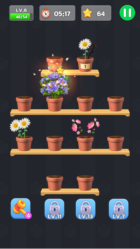 插花消消乐以整理花束为核心玩法,玩家需将杂乱的花朵按颜色分类并移入对应花瓶,匹配三朵同色花朵即可合成更高级的花艺作品。游戏包含数百个精心设计的关卡,难度循序渐进,配合丰富的道具系统和绚丽的视觉效果,让简单的消除操作也能带来深度策略乐趣,鲜艳的花卉元素与柔和的背景音乐共同营造出宁静愉悦的游戏氛围。