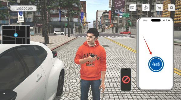 3.这里以外卖模式距离,进入游戏模式中点击右侧的手机。