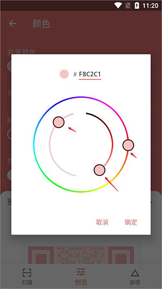 3、点击修改颜色,滑动圆圈内的划片,支持改变二维码的颜色;