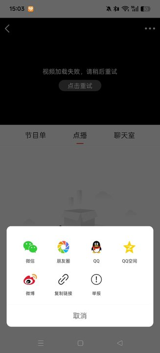 3、点播观看的同时,还可以将所播放的内容节目进行分享,通过二维码图片或是播放页面地址的形式分享出去。