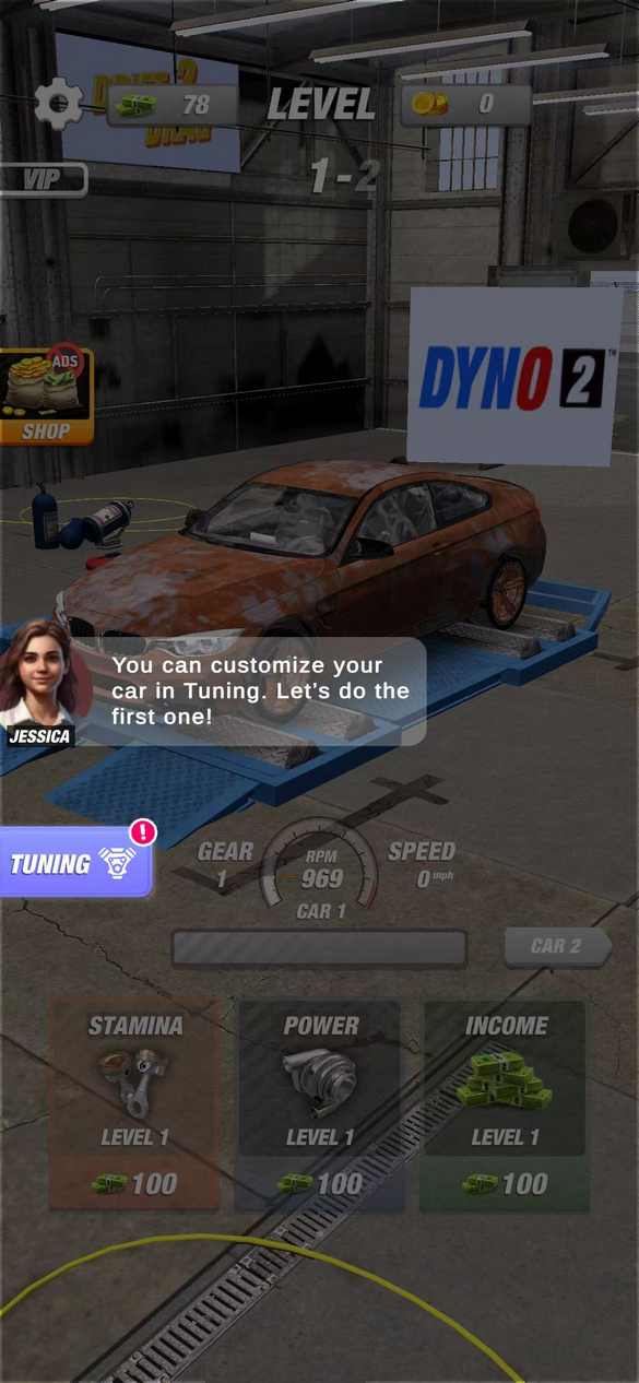 动力2竞速(Dyno 2 Race - Car Tuning)是一款集成高性能赛车改装与极限测试的写实竞速手游,将专业级的车辆调校系统与多地形赛道挑战深度融合。玩家在游戏中将扮演顶级赛车工程师兼车手,从零开始打造专属座驾,通过精密的数据分析与部件升级,解锁车辆在极端环境下的性能潜力。