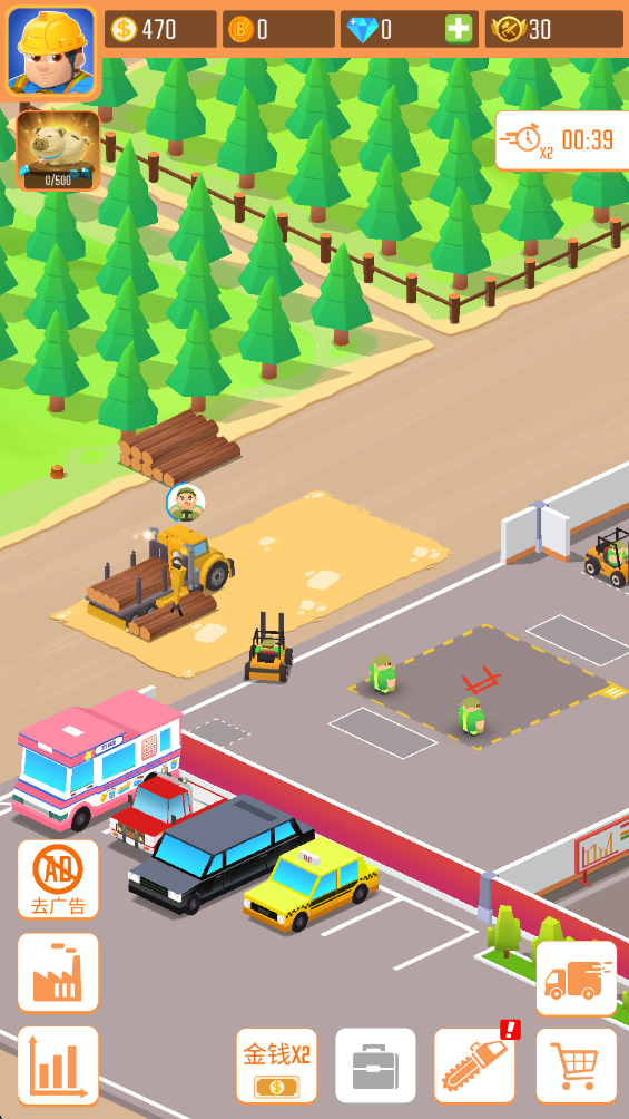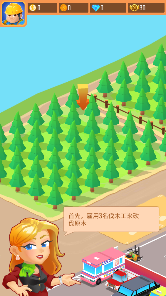 购买卡车是游戏初期的关键步骤,卡车将用于运输原木到市场,确保玩家能够及时出售木材,获取金币。金币是扩展业务的基础,合理利用这些资源至关重要。