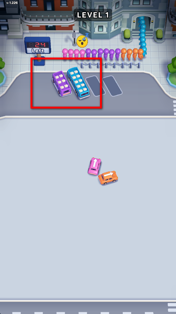 3.上方的停车位数量是固定的,如果没有可以消除的,车辆不会启动,直到有能够消除的小人出现。
