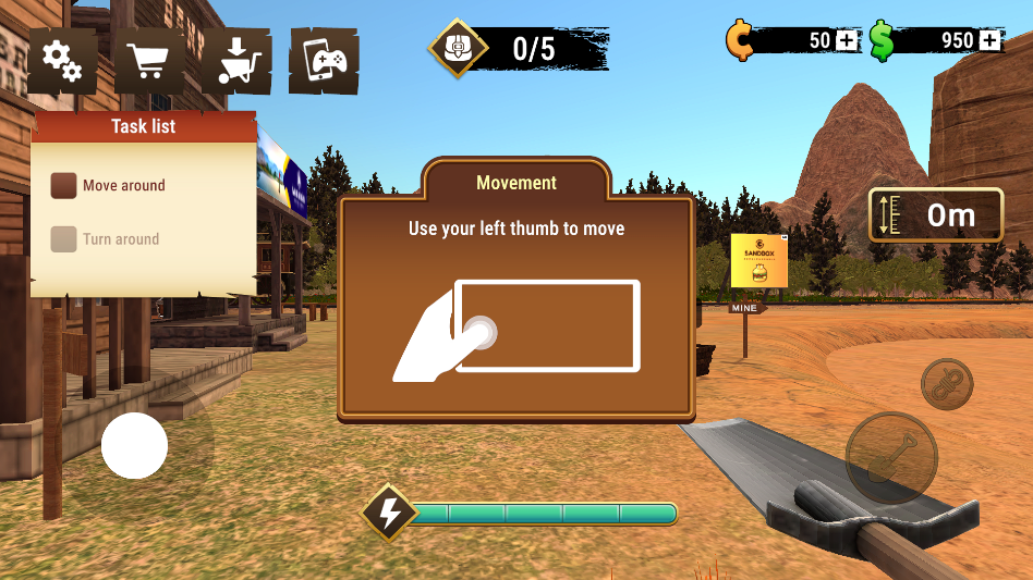 1.进入游戏之后有一段新手教程,根据教程进行角色移动。操作左边移动你的角色。