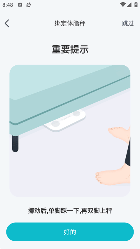 5、挪动后,单脚踩一下,再双脚上秤,完成后点击好的;
