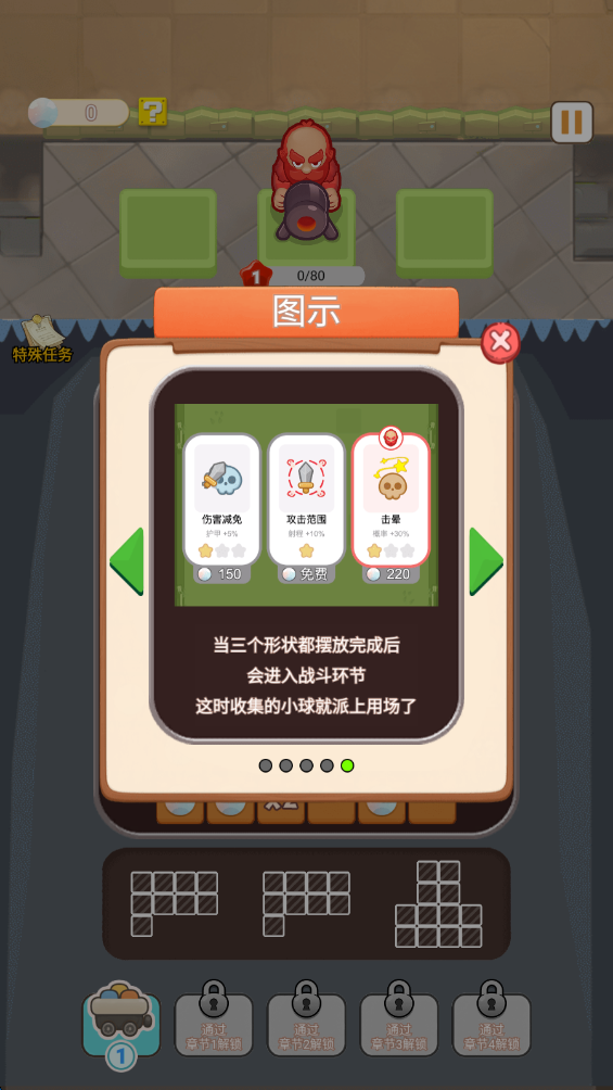 5.当三个形状都摆放完成后会进入战斗环节,这时收集的小球就派上用场了。