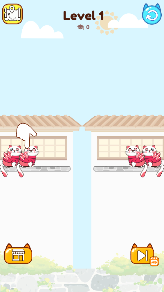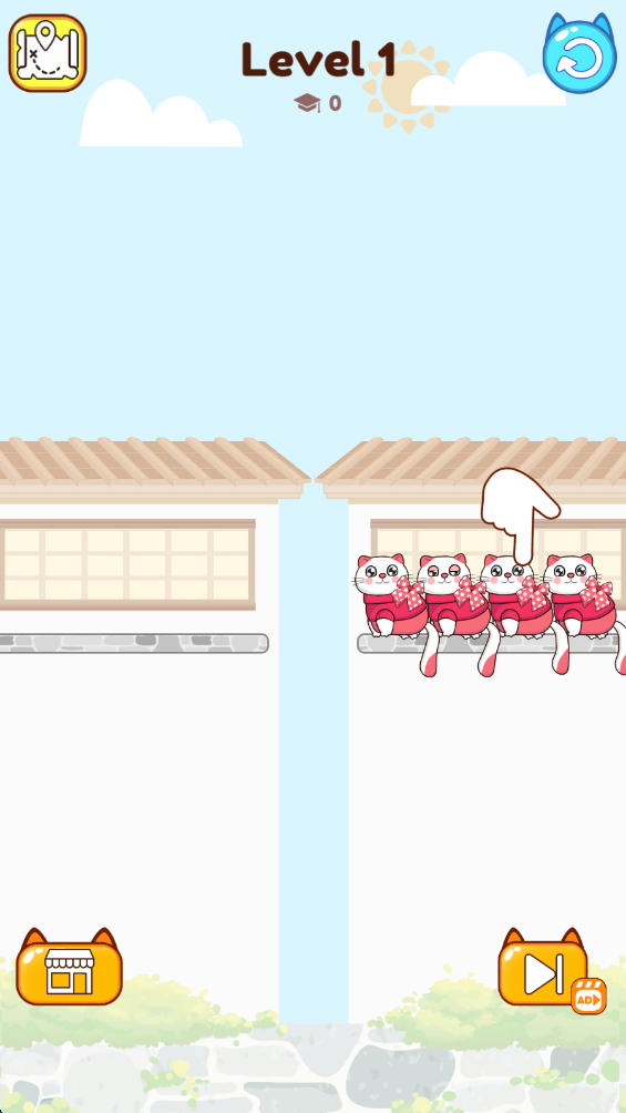 成功将所有猫咪按颜色分类到各自的墙上后,即可通关并解锁后续更具挑战性的关卡。