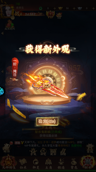 7、【庆典狂欢】全服共庆完成任务,赢取至尊神兵,战力法力双飙升,即刻横扫三界!