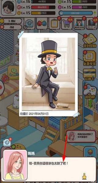 玩家还可以让孩子参加舞蹈班、科学实验等活动,提升相应属性。