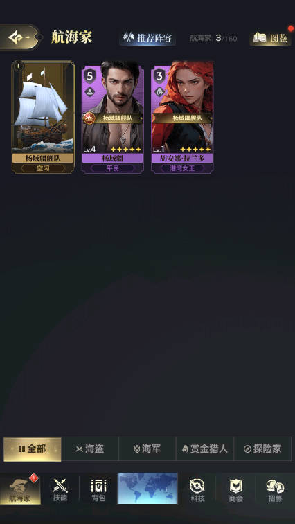 三、海上对决航海家搭配:根据战斗类型合理选择航海家的搭配,比如用海盗与探险家的组合来对敌方贸易船发起突袭。
