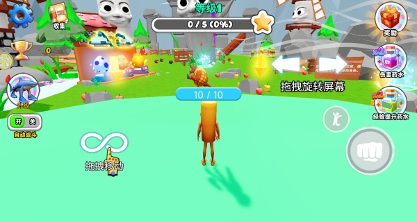 宠物进化作战是一款以生物进化为核心的开放世界冒险游戏,玩家将从最基础的木头人形态起步,通过不断吞噬环境中更弱小的生物来积累进化能量。每次进化不仅会改变外观形态,还会解锁风格迥异的特殊能力,让你在充满混乱道具与趣味动画的世界中,体验从微小生命体成长为顶级掠食者的完整历程,利用快节奏战斗与荒诞道具,在这片进化为王的疯狂土地生存下去。