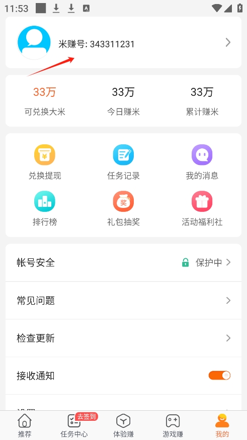 1、点击我的,进入米赚的个人中心页面。
