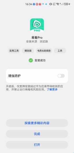 5、出现绿色对号,说明“安装完成”,点击打开,即可体验。