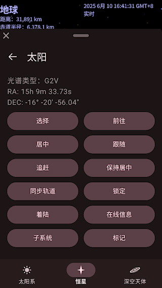 可显示各天体的名称以及天体表面特征的名称,如撞击坑、火山等,还能展现大气层、晨昏时的橘色光线、移动的云等细节,同时可显示目标天体的距离、半径、角直径等信息。