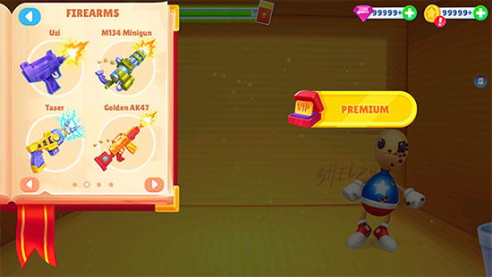 每种武器和道具都有不同的伤害效果,你可以通过不断攻击木偶人获得钞票和金块,用于解锁更多道具。