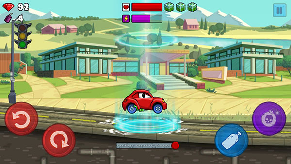 3、在闯关的过程中,你需要不断收集金币,提升你的赛车性能,最终抵达传送口。