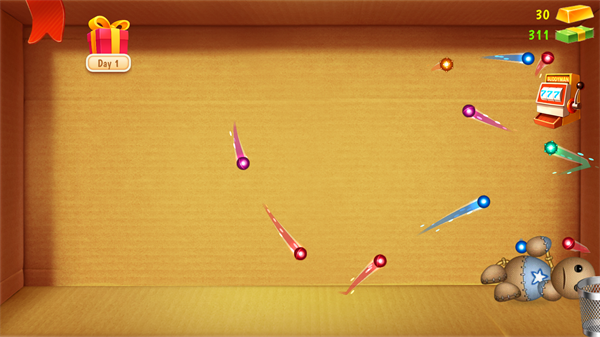 通过攻击木偶人获得金币,用于在商店解锁新武器、场景、特效道具及装扮。