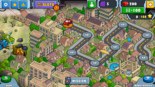 游戏包含4个主题世界,如城市、沙漠、冰雪、火山和 35+关卡,每关设有时间限制与通关目标。