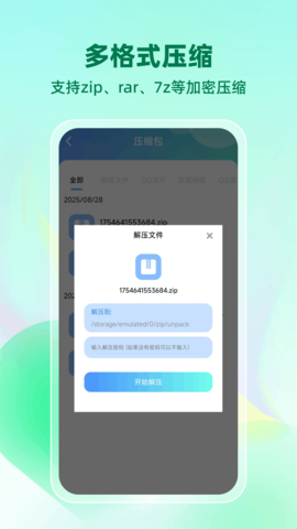 1.格式兼容广泛:软件能够识别并处理市面上绝大多数主流的压缩文件格式,减少了因格式不支持带来的困扰。