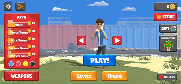 1、下载进入街头搏斗游戏,选择你的角色点击"PLAY"即可开始游戏;