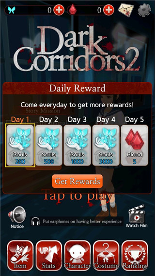 1、下载进入黑色走廊2,游戏拥有大量的每日奖励等你领取;