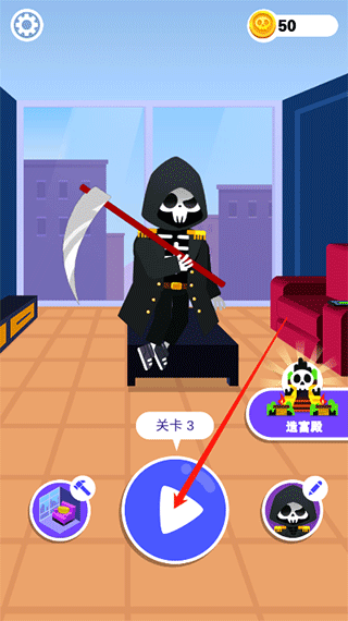 用完成任务获得的金币在商店兑换死神皮肤和购买道具物品,定制专属死神形象。