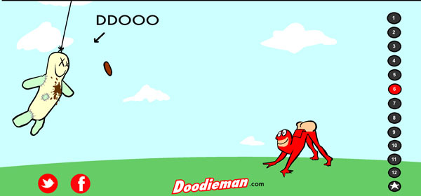通过点击游戏界面右边的数字按钮让大便超人做出各种攻击动作,共有空翻屎、躺屎等11种搞怪攻击招数。
