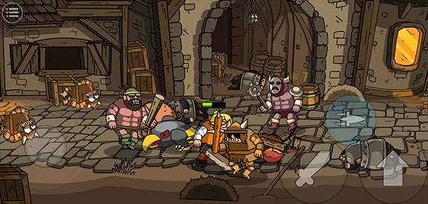 左侧为移动控制,右侧为跳跃、攻击和技能按钮,消灭所有敌人即可顺利通关。