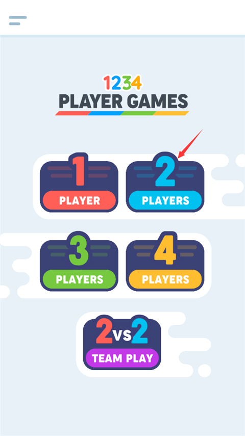 1、打开游戏进入界面,首先我们确认是几个人玩,如果是两个人选择2个人模式玩法;