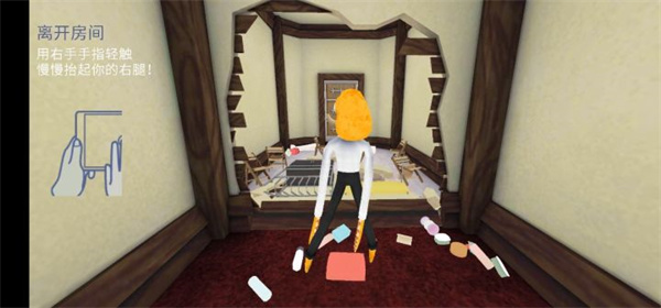 4、离开房间,点击右下角的标志把手切换为脚就可操控走路;