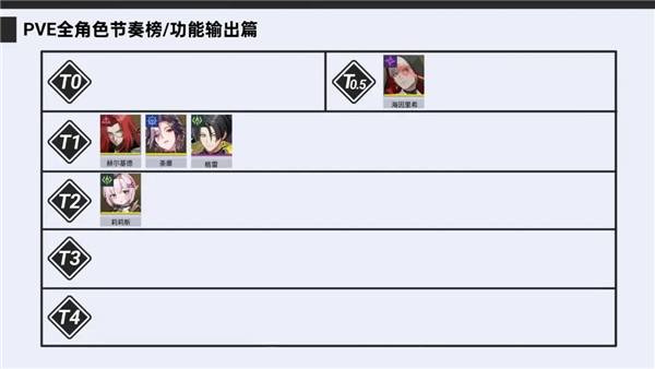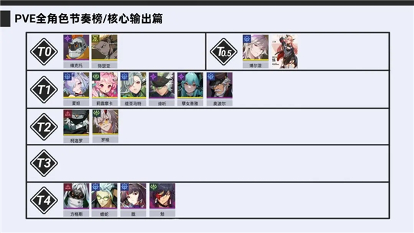 ※此次节奏榜将所有角色按照功能分为:核心输出类、功能输出类、辅助类、生存类