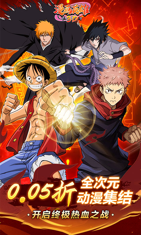 漫画英雄3D是一款横版卡牌手游,集结了《海贼王》《火影忍者》《龙珠》等超人气动漫的传奇角色,你能体验跨次元的梦幻战斗。采用全手绘赛璐璐动画风格,技能特效还原度极高,满屏爆燃,视觉效果堪比动画大片。你将招募路飞、孙悟空、鸣人等人,一起开始动漫大乱斗。