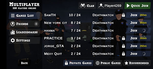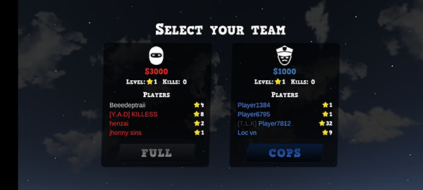 多人联机对战支持在线组队,进行4v4、6v6等规模的警匪对抗。