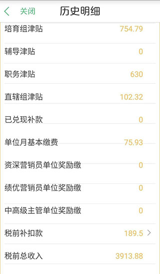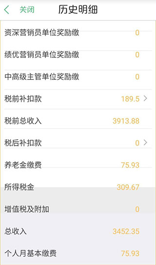 7、页面底部展示当月税前、税后收入等完整明细