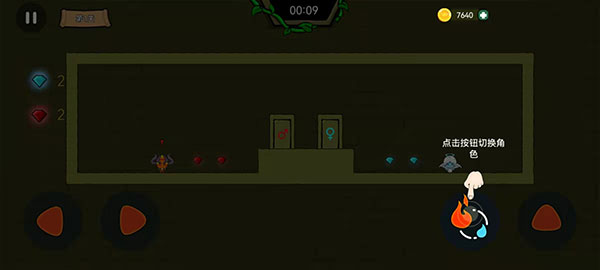 2、以单机模式为例,通过点击右下角的切换按钮,可以自由控制冰娃或火娃进行冒险。