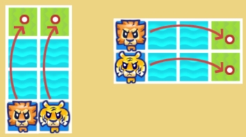 狮子和老虎可以纵向或横向跳过小河,并能在跳跃过程中吃掉对岸战斗力较弱的敌方动物。但如果河中有老鼠(无论是己方还是敌方),则会阻挡狮子和老虎跳过小河。