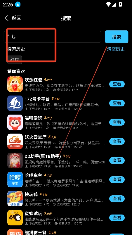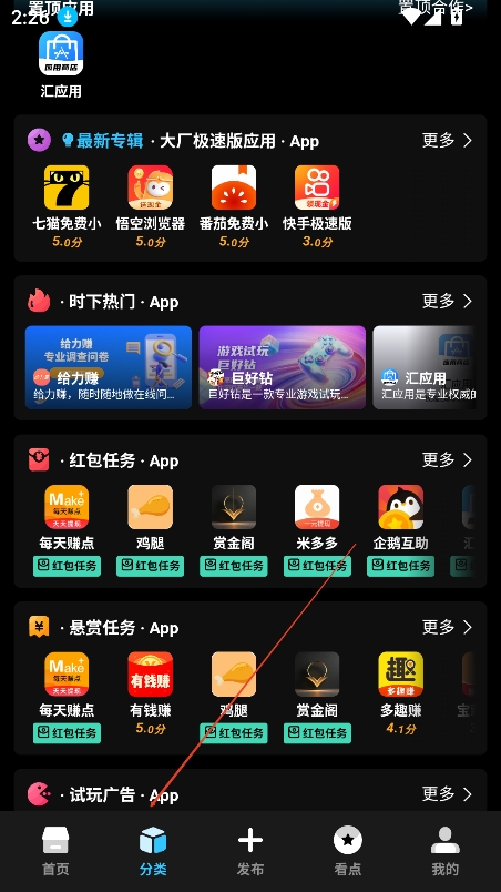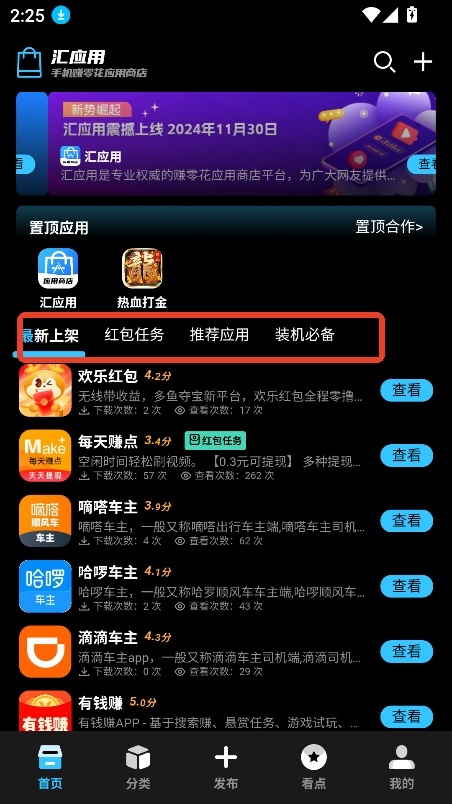 1、浏览应用商店首页,查看最新上架、红包任务等推荐板块